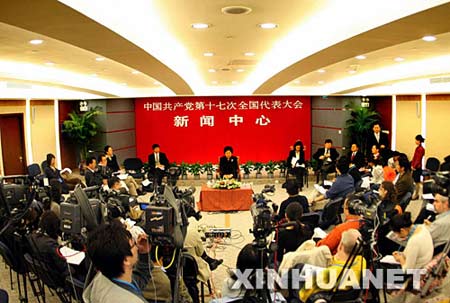 10月18日,十七大代表、全国总工会副主席、书记处第一书记孙春兰在十七大新闻中心接受记者采访。 新华社记者 李涛摄