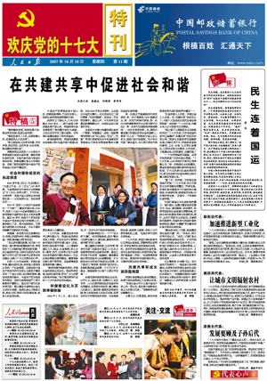 10月18日人民日报《欢庆党的十七大特刊》