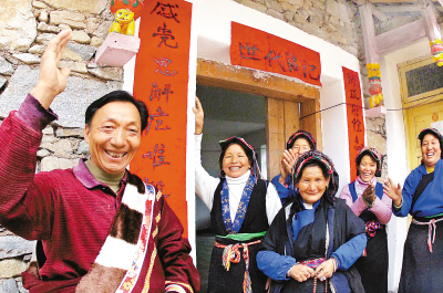 图为2006年春节,四川甘孜藏族自治州康定县前溪乡赶羊村的36户藏民入住新居